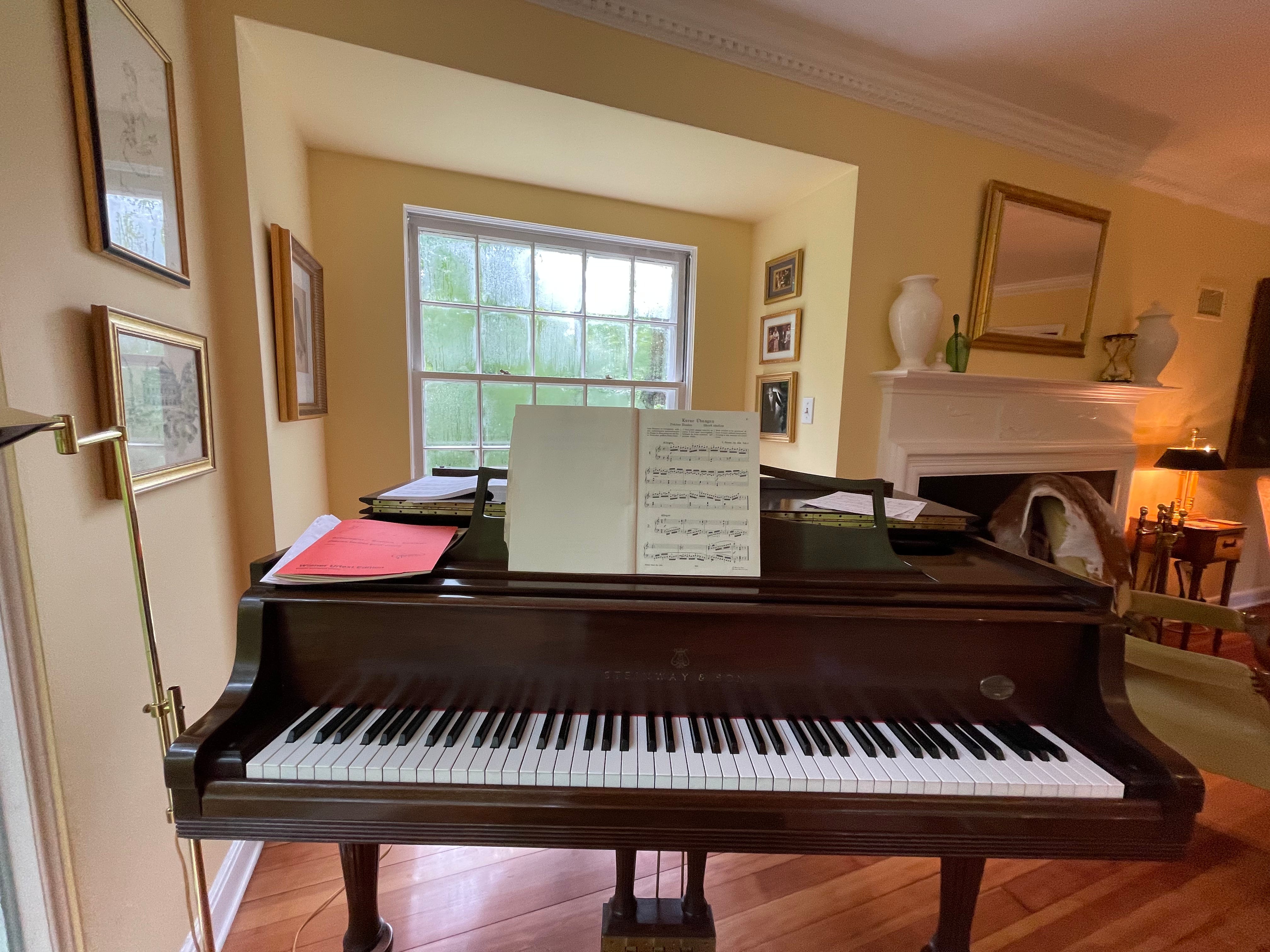 So, I begin by playing the part of the piece I can play. Usually I can get through the first page or so—not always—but when I find a stumbling place, I stop. This is where you have to take everything apart note by note. If it’s an annotated version I note the fingering, which is often helpful, but sometimes intended for someone with big hands. If that’s the case, I work through the most efficient placement of my own fingers for accuracy and velocity, and pencil in the numbers for each finger on each note. Then I play through one hand at a time. Finally, when my fingers have begun to naturally fall on the right notes, I put my hands together and very slowly play through, linking the bar before, and, if possible, the bar afterward. Depending on the music, this can require training your body to be able to leap the hands from one place to another while looking at the music—or knowing the notes so you don’t have to look at the music, but also finding your place in the music again when you look back. So, the variables require concentration, agility, and proprioception—the ability to sense where your body is in space. Having clean glasses helps, too, and mine are often smeared by dog noses.