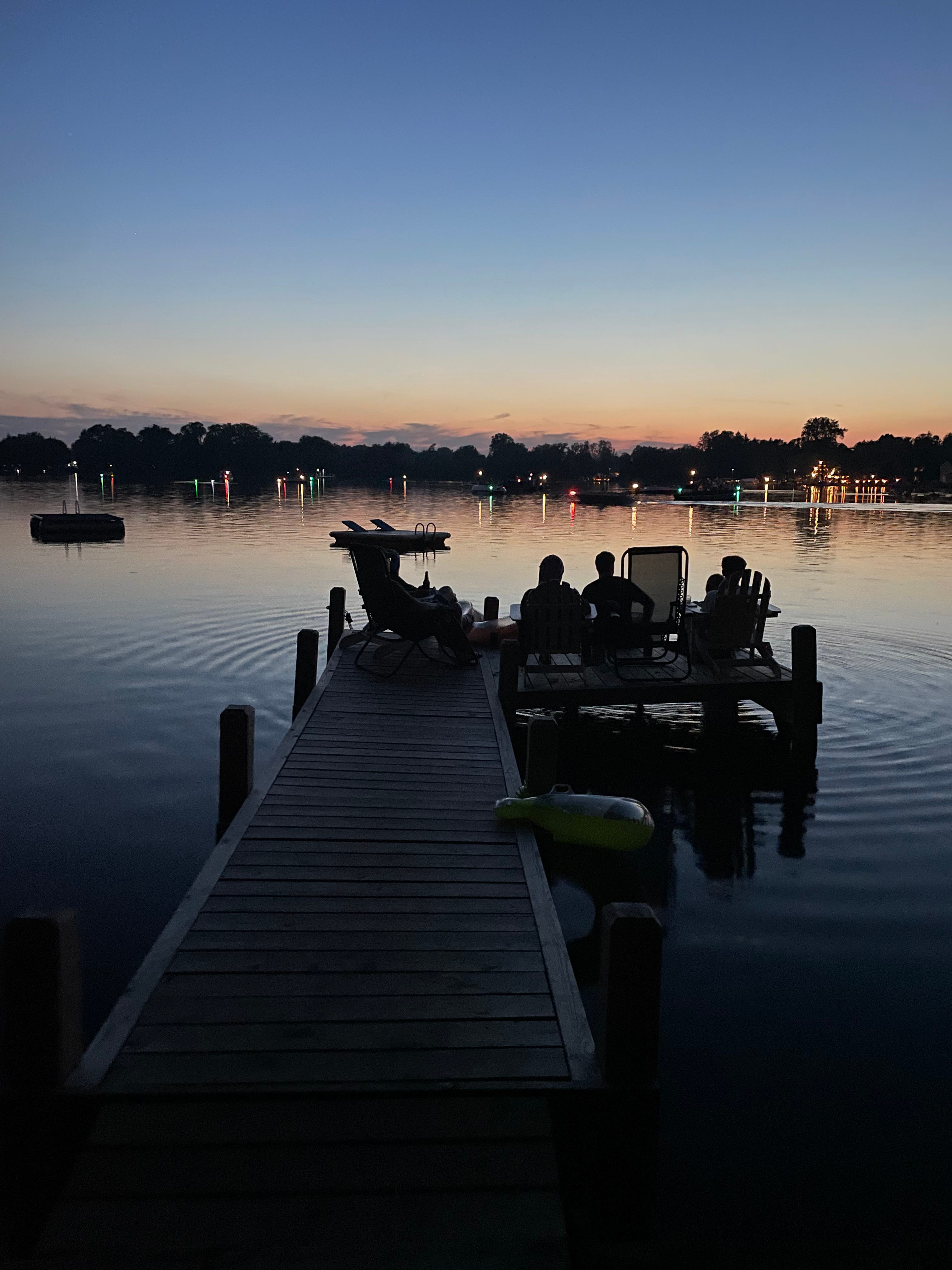 Last night the family went to the movies, but I stayed home. I sat on the dock with a book and a glass of sangria until the sun went down, and then went early to bed. There was rain in the night, and more is on the way, so it will be pleasant to go home to dogs and conveniences.